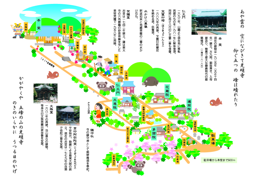 光明寺は麓からも登ることができます。駐車場からは、結構キツい坂が続きますので、休み休み山道沿いにある石碑や寺院を見つつお参りしてみてください。堂々たる本堂が見えると毎度達成感を味わえます。